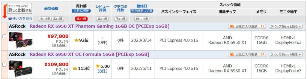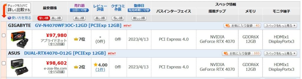なお、日本ではRTX 4070の最安値が97,980円に設定されている一方で、Radeon RX 6950 XTは97,800円とRTX 4070より安い価格で販売されているため、もしこれからグラフィックスカードの購入を検討しており、レイトレーシング性能やDLSS 3.0には興味が無くラスタライズ性能を重視するのであれば、Radeon RX 6950 XTについて検討してみるのも良いかもしれません。