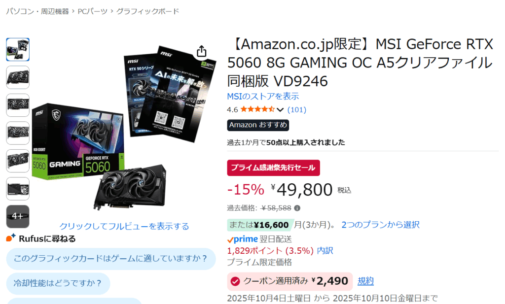 今回のプライム感謝祭は、GeForce RTX 5000シリーズやRadeon RX 9000シリーズなど最新のグラフィックカードを中心に、多くの製品が大幅値下げされています。
