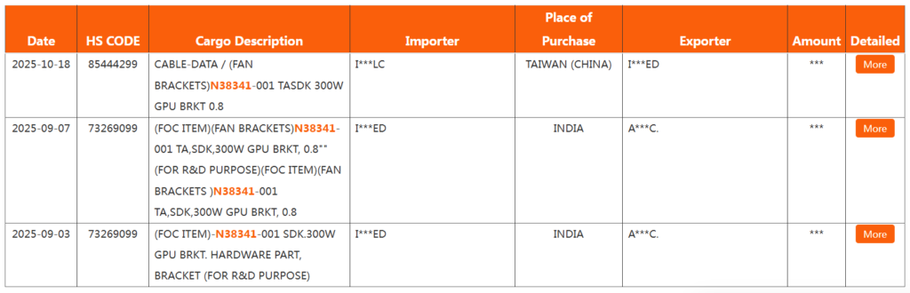 通関手続きなどに必要な出荷明細書を収集するNBDに登録されたデータでは、「N38341」という部品番号で記録されています。この番号は過去に試作品のBMG-G31 GPUと共に登場しているほか、Arc B580 Limited Editionなどリファレンスボードの部品番号とフォーマットが類似しています。これらの点から、Arc B770である可能性が高いと見られています。