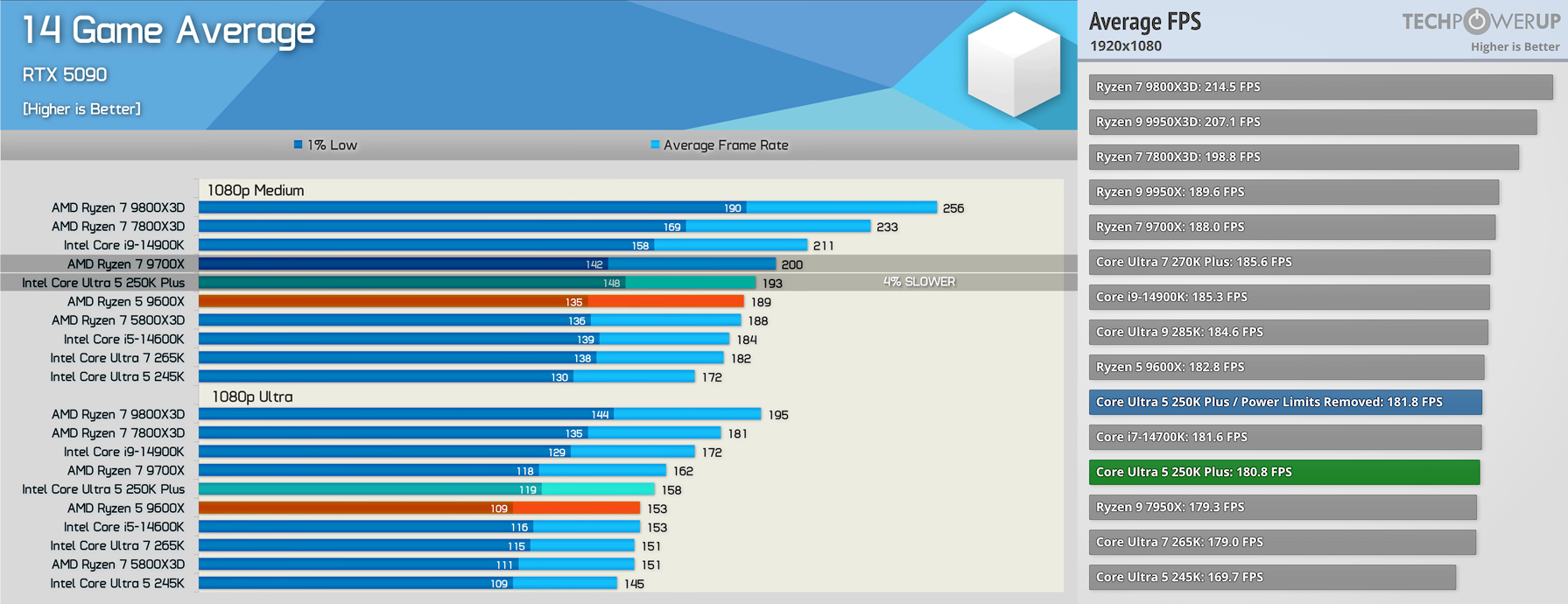 Core Ultra 5 250K PlusはCore i7-14700KやCore Ultra 7 265K並みの性能に