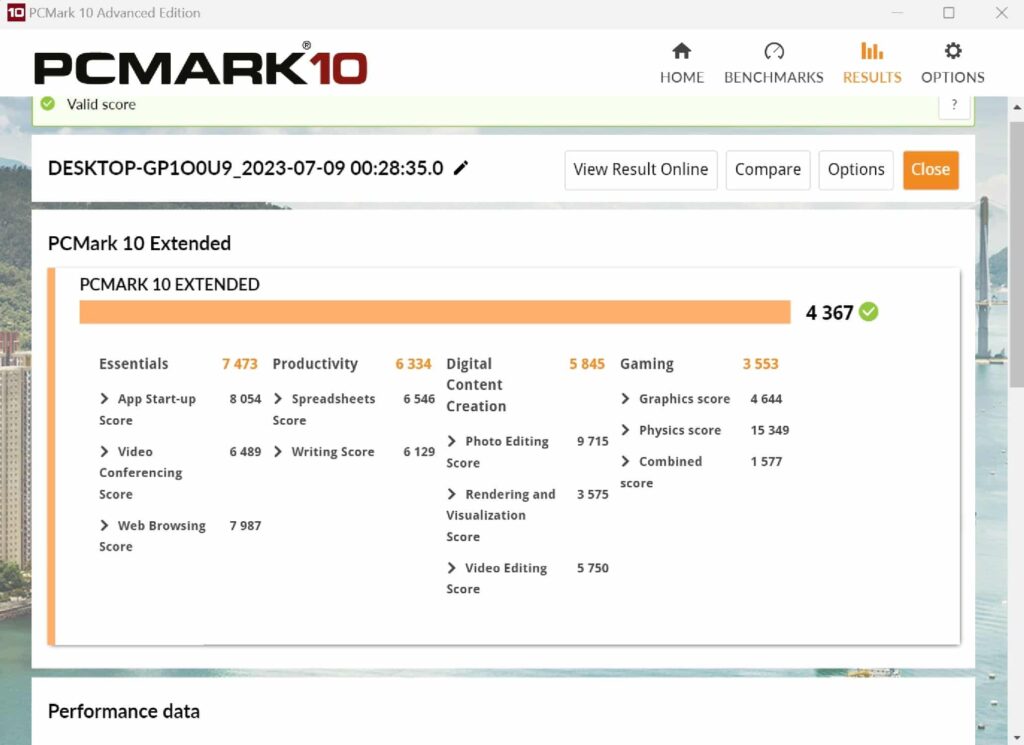 Wordやエクセルなどオフィス用途での性能を示すProductivityにおいては6334ptでエクセル作業時に作業がもたつくなどは無いレベルと言えます。