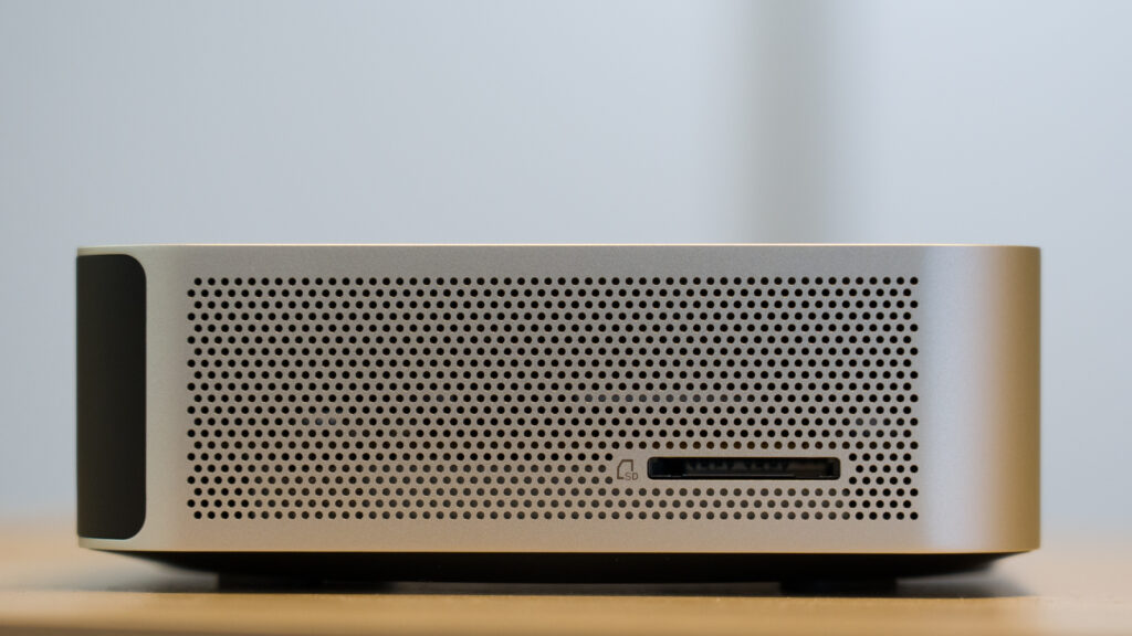 性能面ではRyzen 9 7940HSを搭載しており、CPU性能に不満を感じる場面はかなり少ないでしょう。よほどハードな作業をしない限り、GEEKOMが標準で提供する3年間の保証期間中に性能不足を感じることはなく、5年以上は現役で使えるポテンシャルを持っています。また、ミニPCでは省略されがちなSDカードスロットを標準搭載している点も、写真や動画を扱うクリエイターにとっては嬉しいポイントです。