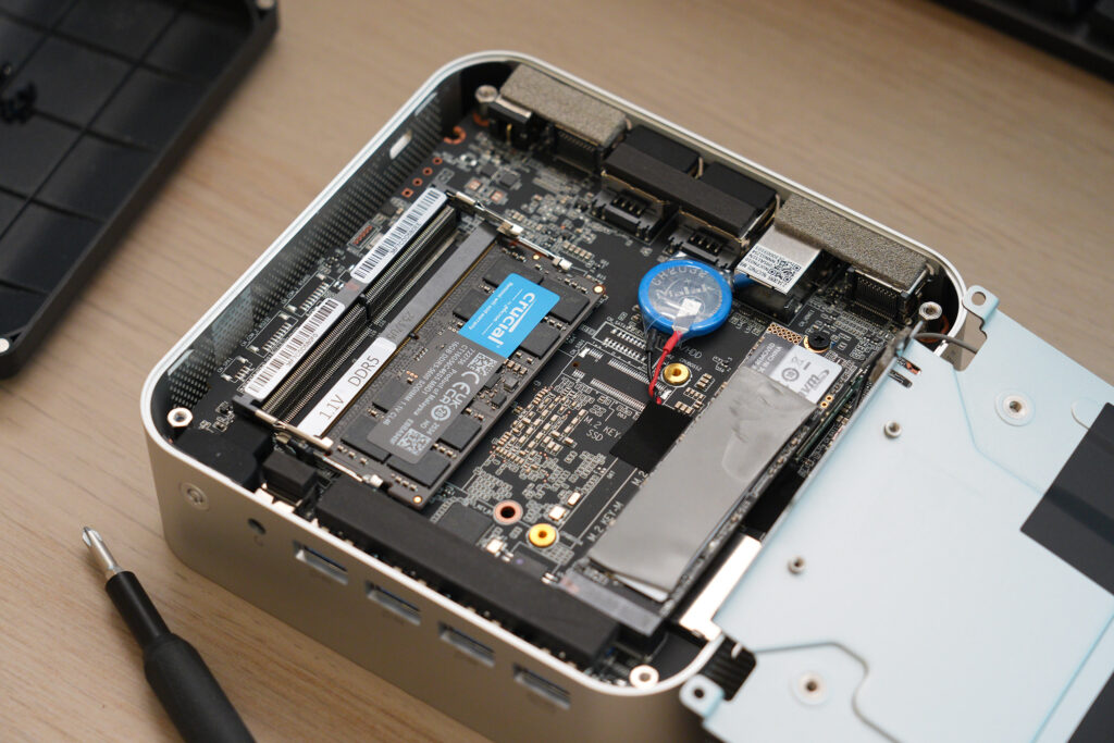 なお、現在販売中のGEEKOM A7 Maxは16GB構成のみ選択可能で、16GBのDDR5がシングルチャンネルで搭載されています。後述するパフォーマンス上の理由からデュアルチャンネル化したい場合は、ユーザー自身でメモリを追加する必要があります。