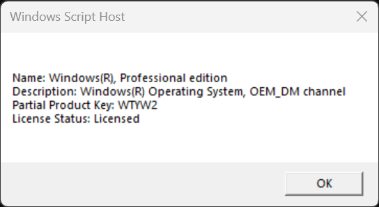 WindowsのライセンスはOEM_DM、すなわち正規のOEMライセンスでインストールされています。使用中にライセンス関連の問題が発生することはありません。