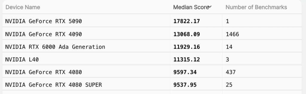 GeForce RTX 5090はBlenderベンチマークにおいて17822ポイントを記録しています。