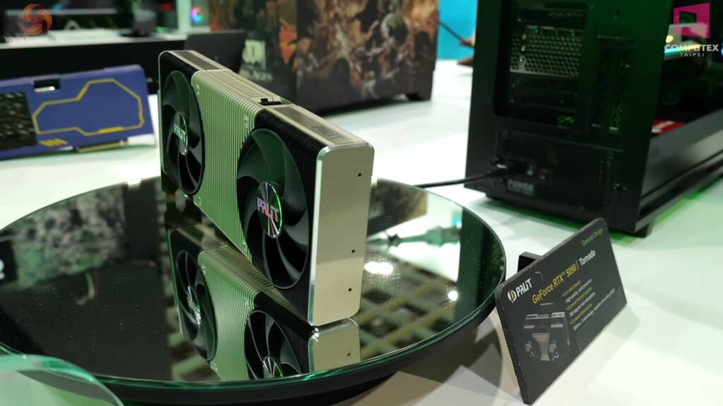 しかし、ドスパラなどで製品が取り扱われているAIBメーカーの一つであるPalitが、現在開催中のComputex 2025において、GeForce RTX 5090 Founders Editionと非常によく似た構造とサイズを持つ「GeForce RTX 5090 Tornado」と呼ばれるコンセプトモデルを展示しました。これにより、将来的にはこのコンパクトなGeForce RTX 5090が市販される可能性が出てきたようです。