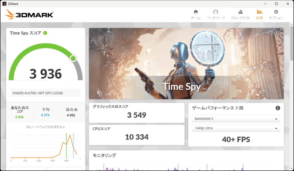 3DMark TimeSpyにおいてはGraphics Scoreが3536ポイントを記録しており、デスクトップ向けのGeForce GTX 1650並みの性能を発揮しています。また、ノートPC向けグラフィックカードで言うとGeForce RTX 2050などにも迫っており、CPU内蔵GPUとしては非常に高い性能と言えます。