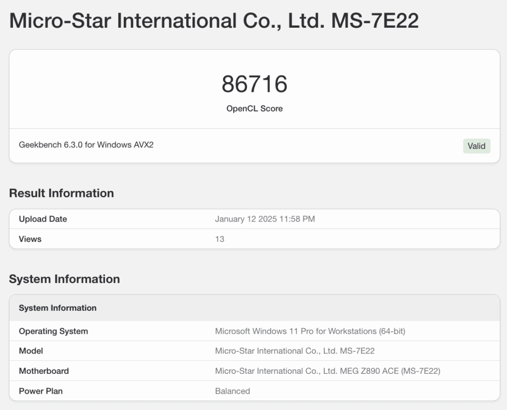Micro-Star International Co., Ltd. MS-7E22 (Arc B570) | Geekbench 6