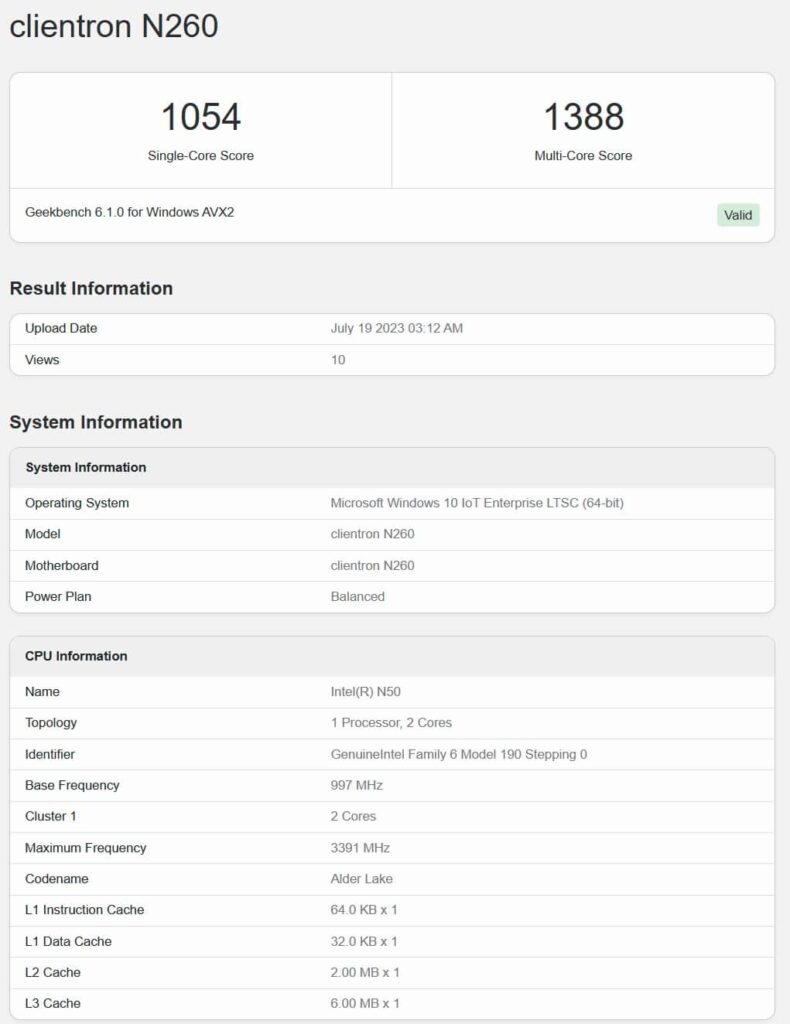 2023年に投入される最弱CPU『Intel N50』のベンチマーク登場。TDP6W、性能は初代Core i5並に