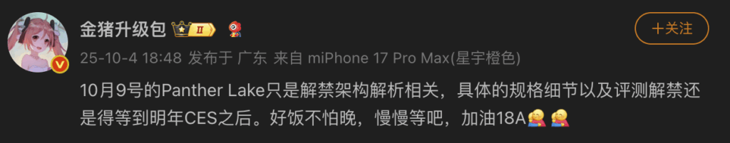 10月のPanther Lake発表は概要のみ。詳細発表はCES 2026に