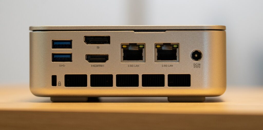 後面インターフェイスは、USB Gen3.2に対応するType-Aポートが2つとDisplay Port 2.0とHDMI 2.1をそれぞれ1ポート、2.5Gbps対応のイーサネットを2ポート搭載しています。