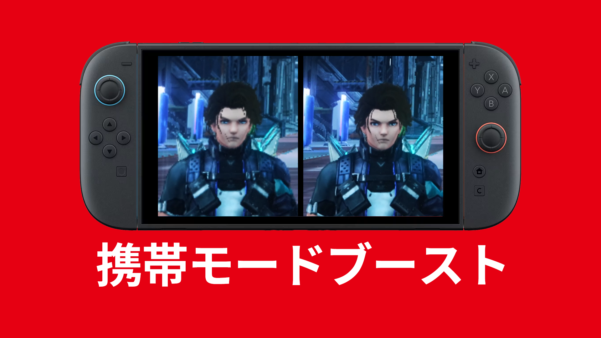また、ゼノブレイドクロスにはNintendo Switch 2 Editionが発売されていますが、同タイトルのアップスケーリング品質は非常に悪いことが指摘されています。しかし、Switch 2 Editionと携帯モードブーストを比較すると後者の方が高画質で描写されており、描写解像度自体が大きく向上していることが明らかになっています。