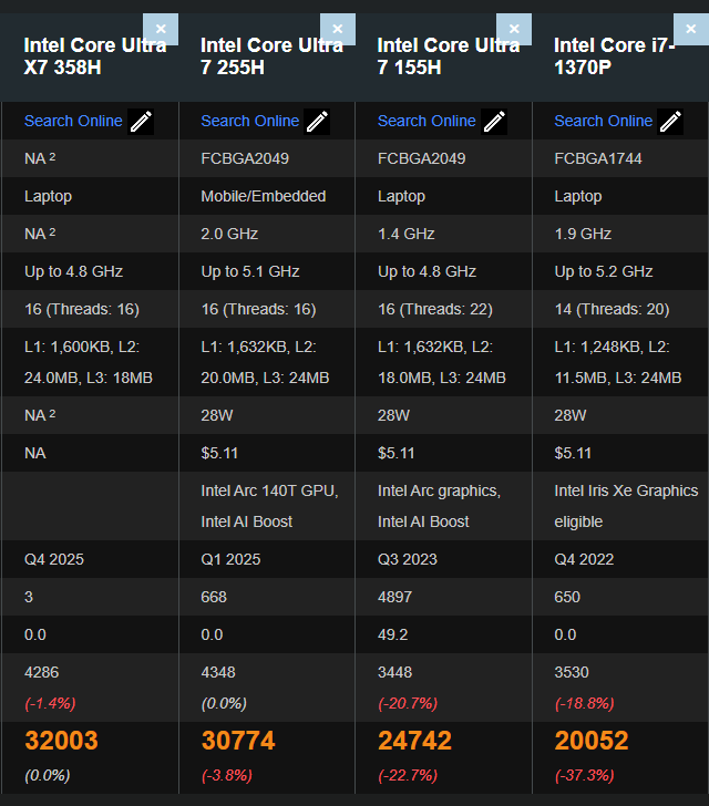 Intel Core Ultra X7 358Hの最終仕様に近いCPUベンチマークが登場