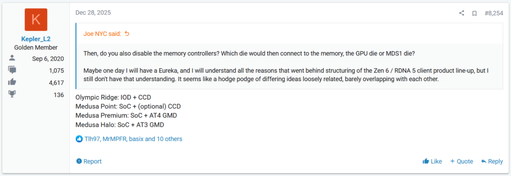 一方で、ハイエンドモデルはRDNA 5を搭載する見通しです。Zen 6世代ではMedusa Premium(別のリークではMedusa Halo Mini)やMedusa HaloがRDNA 5を搭載する計画となっています。