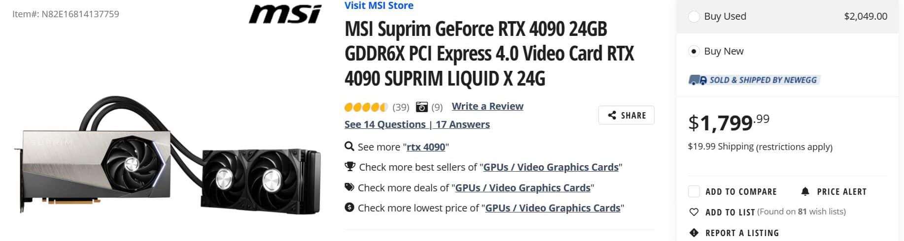 実際にNeweggやBestbuyではRTX 4090に関しても$1935から現在は$1800で販売が行われています。Neweggの価格は基本的に新製品はあまり値下げが行われない傾向にありますが、弱気な価格が設定されていることから想定以上に売れていない可能性があるようです。