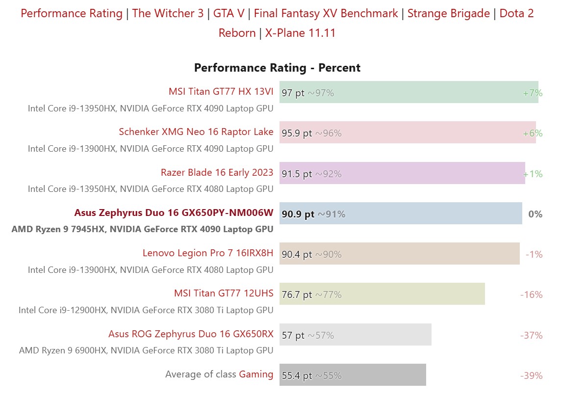 このRyzen 7045HXシリーズについては既に最上位モデルのRyzen 9 7945HXやハイエンドのRyzen 7 7745HXのベンチマーク結果は出ていますが、今回このRyzen 9 7945HXを搭載したハイエンドゲーミングノートPCのASUS Zephyrus Duo 16をレビューした結果がNotebookCheckにて掲載されており、このRyzen 9 7945HXの性能が明らかになりました。