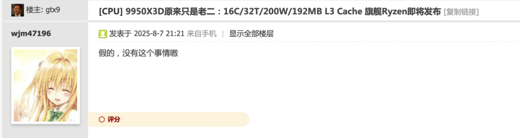 中国フォーラム「Chiphell」で活動するリーカー、wjm47196氏によると、先日別のリーカーが示した「Ryzen 9 9950X3DのデュアルX3Dモデル」については、「そのような製品は存在しない」と明確に否定しています。